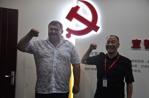 原來,他們兩人一個是烏克蘭國家核工業(yè)專家、INTELSERVISE公司董事長尤里•杜特切科;一個是晨越建管集團(tuán)公司黨委書記、董事長王宏毅。尤里•杜特切科曾是前蘇聯(lián)蘇共黨員,蘇聯(lián)亡黨亡國后,轉(zhuǎn)入俄羅斯聯(lián)邦共產(chǎn)黨,自稱對共產(chǎn)黨有深厚感情。他一行人專程來中國,是為尋找核工業(yè)合作伙伴,拓展核電裝備研發(fā)及出口、核電技術(shù)及核廢料處理業(yè)務(wù),通過中方外事部門和信息渠道,獲悉晨越集團(tuán)公司是非公企業(yè)建立有中共黨委,必定規(guī)模實(shí)力強(qiáng)盛,符合其期望。來蓉雙方洽談,簽定了戰(zhàn)略合作框架協(xié)議。尤里•杜特切科步入晨越黨群活動中心,騰地面對中共黨徽、舉起右手莊嚴(yán)宣誓,又由黨委書記王董用中文宣讀領(lǐng)誓,兩位董事長、中俄友黨人士一同宣誓,將氣氛推向高潮。