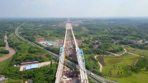 2021年5月21日上午10時,在隆隆的鞭炮與歡呼聲中,自貢東站配套設(shè)施項目全長1.07km的高架橋最后一聯(lián)鋼箱梁成功吊裝合龍,標(biāo)志著高架橋主體全線貫通,為確保2021年6月30日工程正常投入使用又進(jìn)了一步。