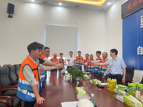 2021年5月28日,集團(tuán)組織監(jiān)理部、質(zhì)安部、人力資源部等分管領(lǐng)導(dǎo)前往項目部,對項目部員工進(jìn)行慰問,對晨越人堅守崗位、揮灑汗水為自貢東站 “6·30”投用保駕護(hù)航表示感謝。同時,要求全體項目人員,繼續(xù)保持高度的工作責(zé)任心和高昂的工作熱情,發(fā)揮專業(yè)優(yōu)勢、發(fā)揚鐵軍精神,為自貢城市建設(shè)貢獻(xiàn)力量!