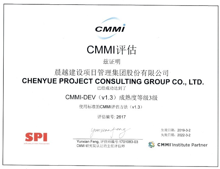 晨越建管集團(tuán)于2019年3月通過(guò)CMMI3(Capability Maturity Model Integration For Software,軟件能力成熟度模型集成)資質(zhì)認(rèn)證,具有專業(yè)的開發(fā)團(tuán)隊(duì)和成熟的開發(fā)模式,目前已為多家政府部門、企業(yè)事業(yè)單位定制開發(fā)信息系統(tǒng)。CMMI是由美國(guó)卡耐基梅隆大學(xué)軟件工程研究所(Software Engineering Institute,SEI)組織全世界的軟件過(guò)程改進(jìn)和軟件開發(fā)管理方面的專家開發(fā)而出,并在全世界推廣實(shí)施的一種軟件能力成熟度評(píng)估標(biāo)準(zhǔn),主要用于指導(dǎo)軟件開發(fā)過(guò)程的改進(jìn)和進(jìn)行軟件開發(fā)能力的評(píng)估。