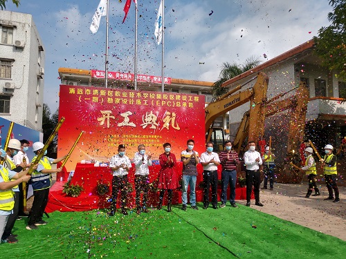 2020年2月25日,在項(xiàng)目業(yè)主清遠(yuǎn)市清新區(qū)代建項(xiàng)目管理中心的組織下,隆重舉行了“清遠(yuǎn)市清新區(qū)職業(yè)技術(shù)學(xué)校新校區(qū)建設(shè)工程(一期)勘察設(shè)計(jì)施工(EPC)總承包開工儀式”,集團(tuán)清遠(yuǎn)新城分公司受邀參加儀式。