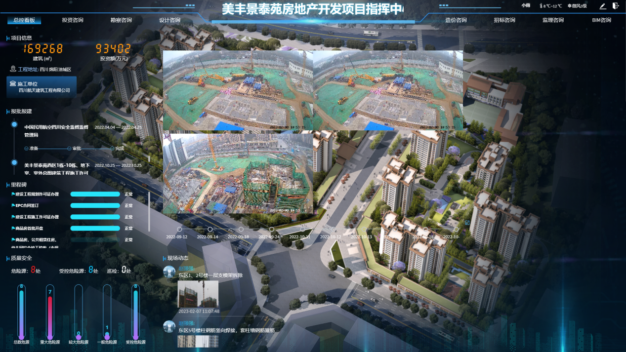 物聯(lián)現(xiàn)場(chǎng)實(shí)時(shí)動(dòng)態(tài)的美豐景泰苑項(xiàng)目全過(guò)程工程咨詢管理平臺(tái)主界面(PC版)