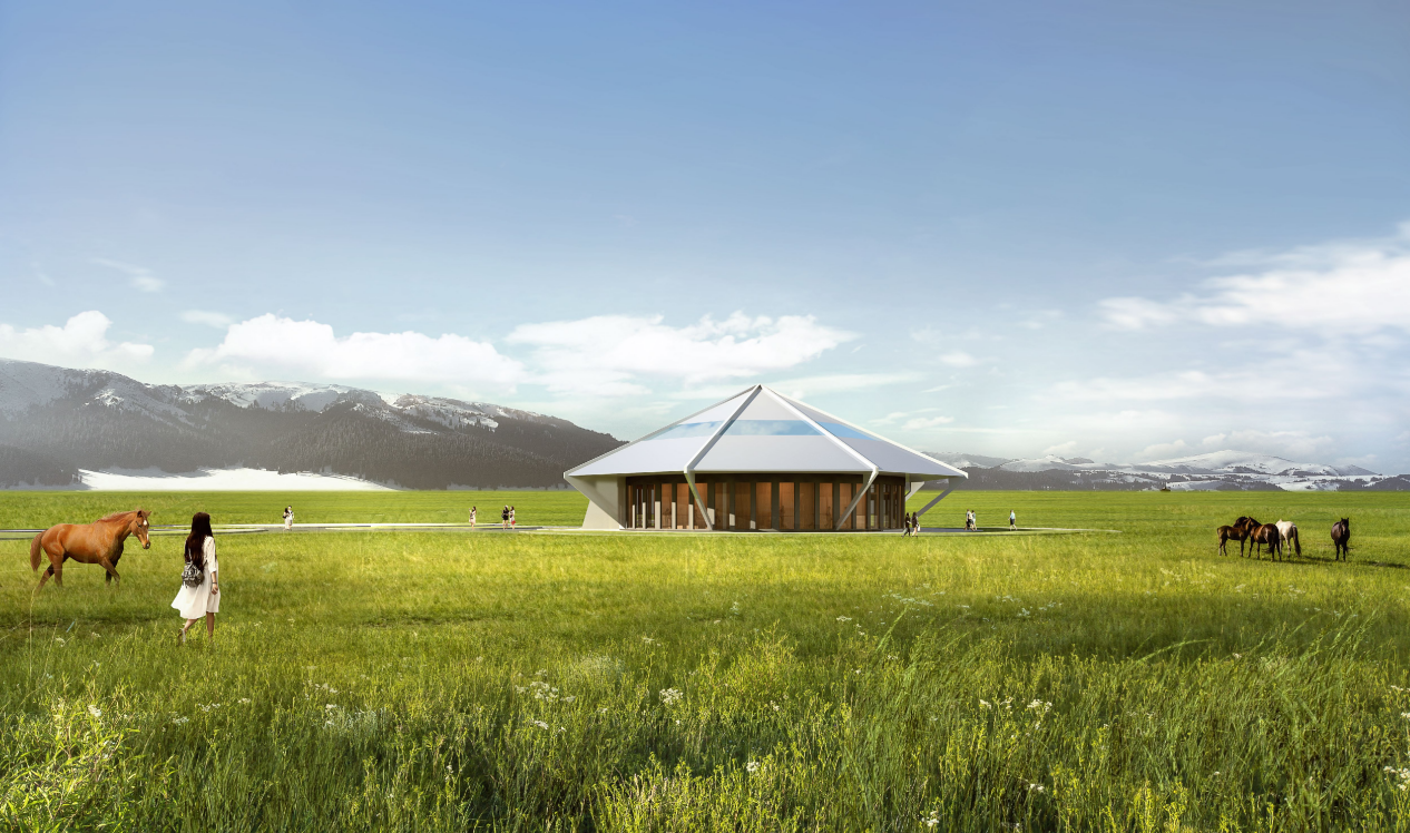 項(xiàng)目總體規(guī)劃以“斗轉(zhuǎn)星移,雪域飛舟”為理念,將游客服務(wù)站等單體建筑構(gòu)想為一艘艘穿越星河的璀璨飛舟,破開時(shí)空壁壘,降落在天山雪嶺環(huán)繞的賽里木湖畔,與壯麗的自然景觀融為一體,將周邊建筑通過道路和景觀串聯(lián)起來,猶如七星伴月,構(gòu)成一幅靈動(dòng)的畫面。設(shè)計(jì)以傳統(tǒng)蒙古包為靈感,融入現(xiàn)代技術(shù)元素,打造具有現(xiàn)代感和傳統(tǒng)文化特色的建筑以保護(hù)自然資源環(huán)境為基礎(chǔ),實(shí)現(xiàn)生態(tài)可持續(xù)發(fā)展。